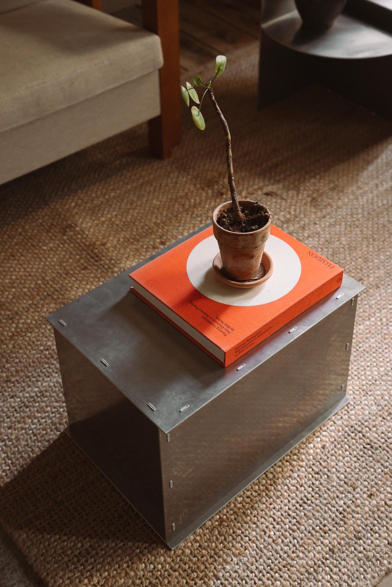 The Rivet Box Table is a sturdy, timeless piece of furniture that can be arranged vertically or horizontally and can be used as a table, a storage unit, a pedestal for display, or a combination of all three. Based on a riveting technique suitable for making perpendicular joints between separate, laser-cut raw aluminium sheets, the item is put together by hand using a hammer in a cold-forming assembly process developed by designer Jonas Trampedach in 2011.