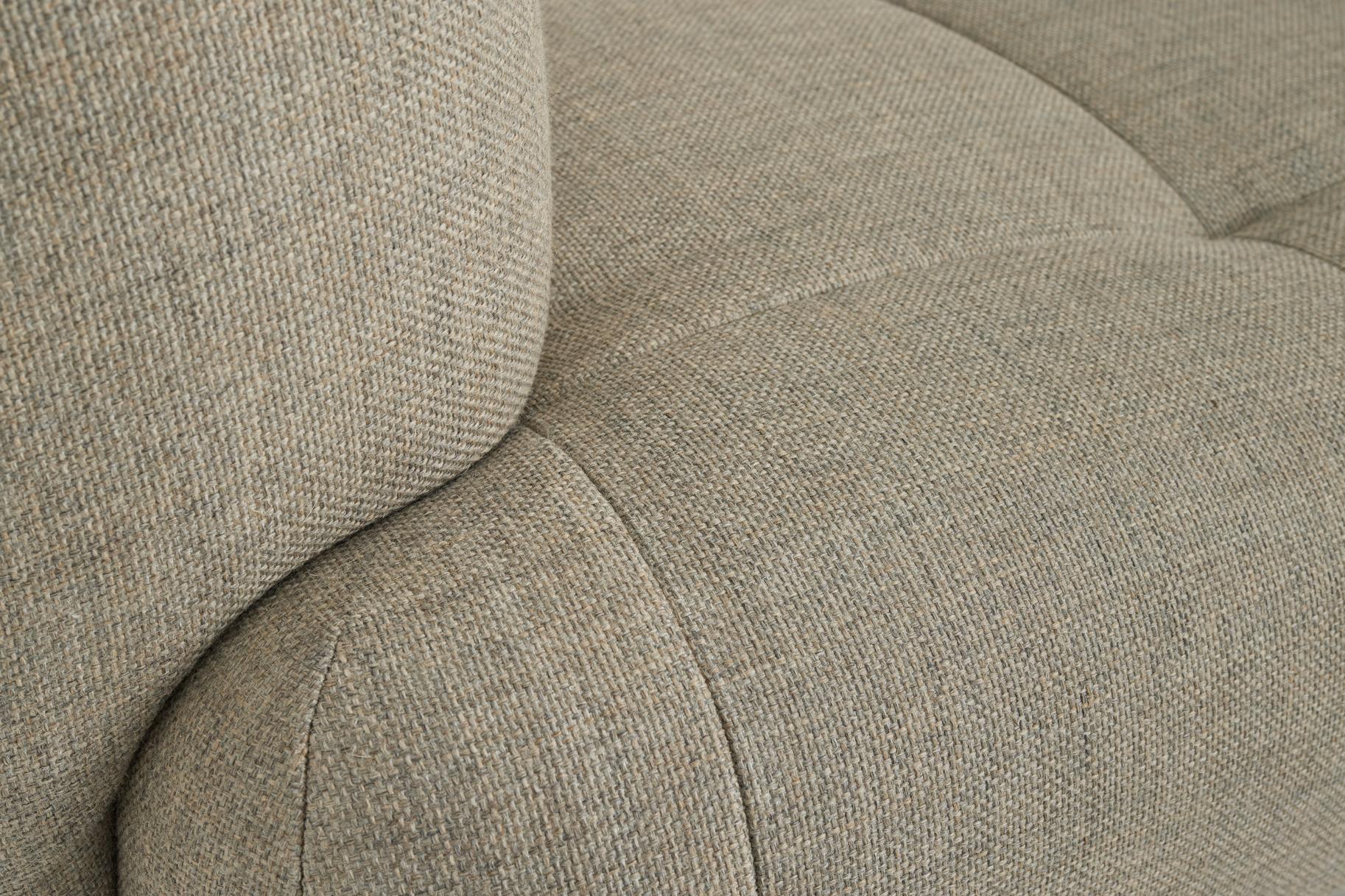 Plywood core with solid wood edges and top veneer incl. felt pads. Cushion filling | Fibres made from 100% recycled post consumer polyester. Fabric - 46% wool, 20% linen, 19% polyester,